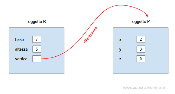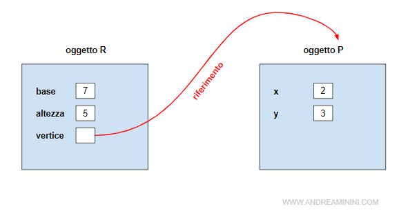 Il vertice è, invece, un riferimento all'oggetto P della classe Punto.