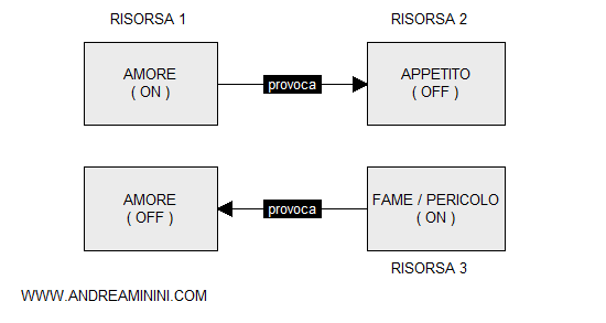 Ad esempio, quando l'algoritmo dell'innamoramento è in esecuzione, si disattiva l'algoritmo della fame e dell'appetito. La persona smette di mangiare.