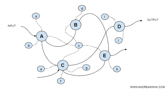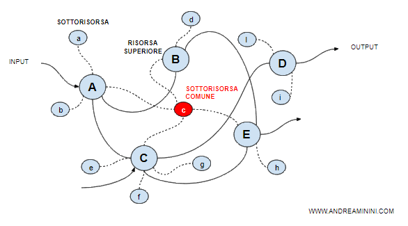 Alcune sottorisorse sono dedicate ( a, b, d, e, f, g, h, i, l ) mentre altre sono comuni ( c ) e possono essere utilizzate da più risorse di alto livello.