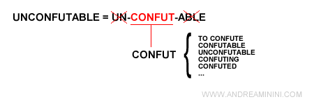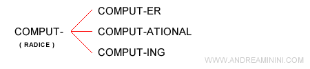- Individuazione della radice. Si individua la radice della parola partendo da sinistra verso destra.