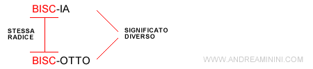 - Stessa radice ma significati diversi. La radice identifica famiglie di parole con significato differente.