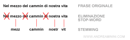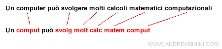 Nota. Il testo nella forma radice non sostituisce quello con le parole nella forma piena, bensì lo affianca come un descrittore di keyword per agevolare le operazioni di selezione.