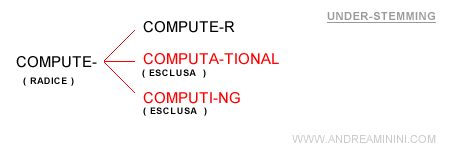 Under-stemming. I termini sono più specifici ma si rischia di perdere qualche relazione tra le parole che hanno lo stesso significato. Lo svantaggio è la perdita di generalità.
