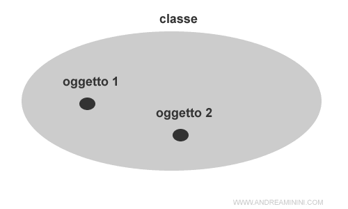 La differenza tra una classe e un oggetto è la stessa che c'è tra un insieme e un elemento dell'insieme.