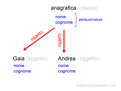 Uso la classe anagrafica per creare due oggetti: Andrea e Gaia.