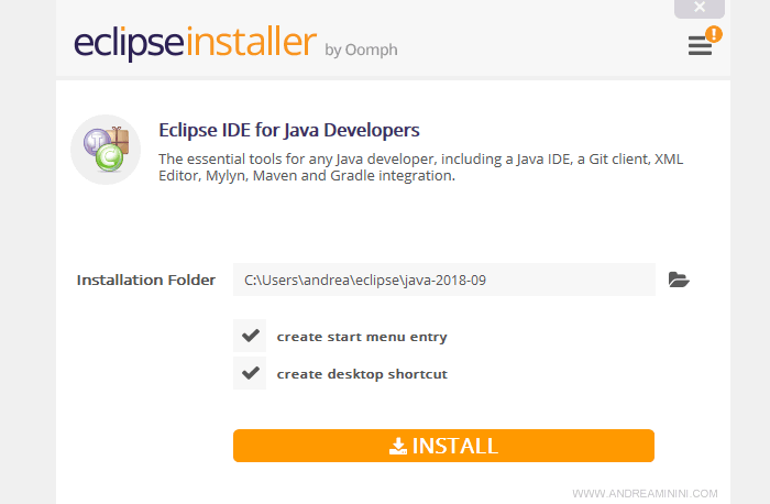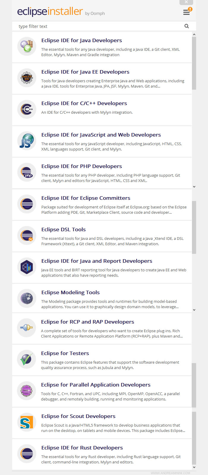Si avvia l'installer di Eclipse con i vari IDE installabili.