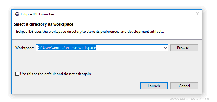 Con il primo accesso si avvia la configurazione di Eclipse.