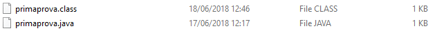In questo caso, javac crea il file primaprova.class nella stessa cartella del file sorgente.