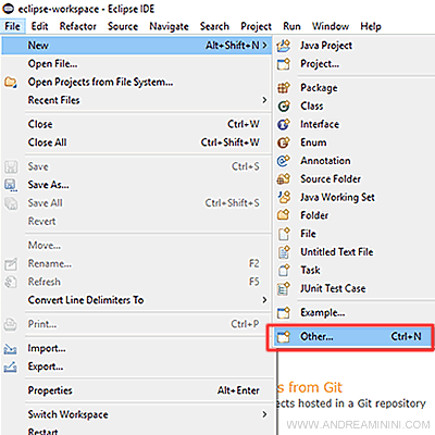 Poi seleziono New e la sottovoce Other in basso.