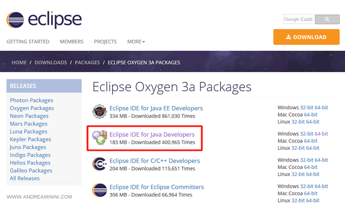 Eclipse IDE for Java Developers è un editor Java per programmatori.