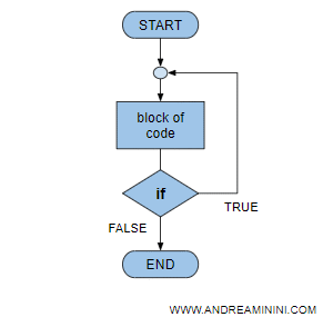 Nota. La struttura ciclica while, viceversa, non avrebbe effettuato nemmeno un'iterazione, perché la condizione di controllo è situata prima del blocco di istruzioni.