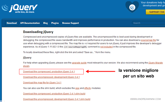 Scelgo la versione jQuery compressed (compressa) perché è ottimizzata con pochi spazi in bianco, priva di commenti, ed è pertanto più leggera da utilizzare sul server.