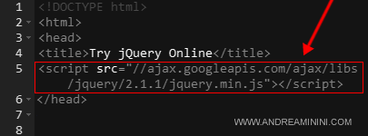 Qual è meglio? Locale o remota? Per usare la libreria dall'esterno, senza installarla sul sito, basta inserire un semplice script nella sezione <head> delle pagine HTML. In genere, si richiama la libreria messa a disposizione da Google.