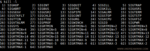 Tuttavia, ho utilizzato soltanto il segnale di default del comando kill ossia il numero 15 o TERM.