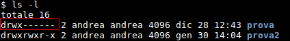 Ad esempio, se l'utente "pippo" provasse ad accedere alla directory "prova", vedrebbe il messaggio di errore "permesso negato".