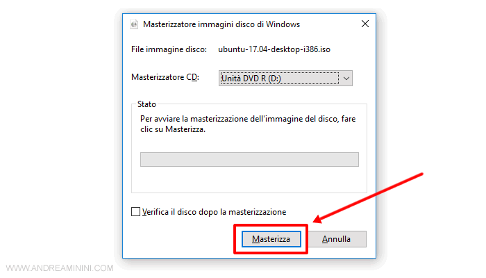 Poi clicco su Masterizza.