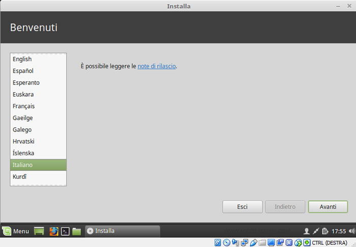 A questo punto posso iniziare l'installazione di Linux.