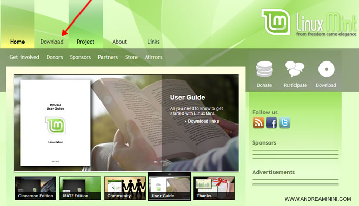 Ad esempio, vado sul sito di Linux Mint e clicco su Download.