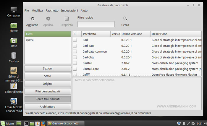 La precedente schermata mostra un esempio di gestione pacchetti sulla distribuzione Linux Mint.