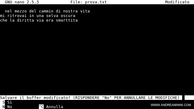 Per salvare le modifiche, una volta finito, premo la combinazione di tasti CTRL+O.