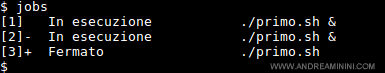 Il comando jobs visualizza l'elenco dei processi in background e di quelli sospesi.