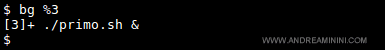 Per continuare in background l'esecuzione del programma interrotto, digito il comando bg seguito dal numero di jobs.