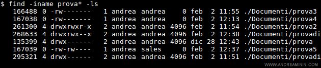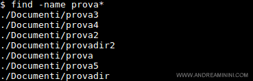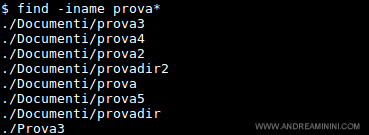 Nota. Se non è specificato, la ricerca viene effettuata sulla directory corrente dove viene eseguito il comando find.