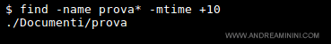 In questa espressione cerco i file con il nome che comincia con prova* creati da almeno 10 giorni.