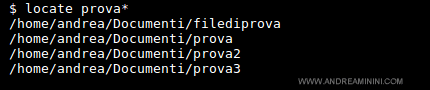 Per cercare tutti i file prova* scrivo il comando locate prova*.