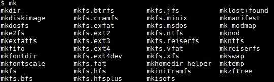 Per autocompletamento, la shell elenca tutti i comandi che cominciano con mk.