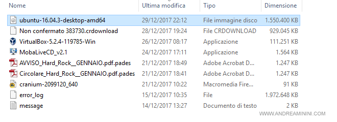 Non solo Ubuntu. Io ho scaricato il file ISO del sistema operativo Ubuntu ma qualsiasi altra distribuzione Linux va bene. La macchina virtuale può eseguire qualsiasi distribuzione ( Mint, Debian, Fedora, ecc. ). L'importante è scaricare un file immagine del disco di installazione di Linux sul PC.