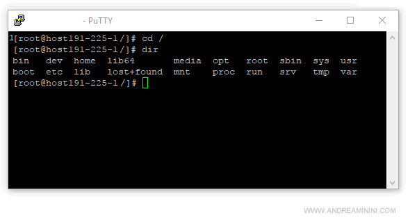 Poi digito CD / nella linea di comandi e premo invio. Tra il comando CD e la barra / deve esserci uno spazio.