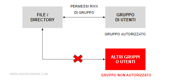 Anche le risorse ( file e directory ) sono associate a gruppi.