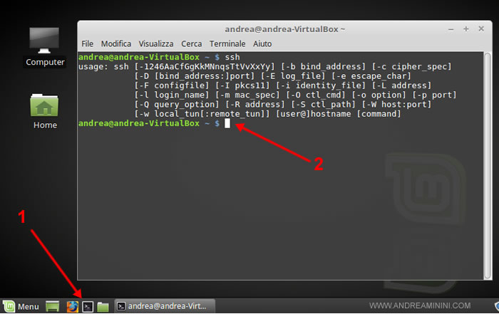 Ad esempio, su Linux Mint si accede alla linea comandi cliccando su un'icona nella barra del menù inferiore.