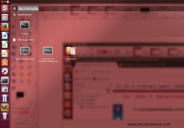 Su Linux Ubuntu, invece, per usare la linea comandi bisogna cliccare sull'icona della ricerca e digitare terminale.