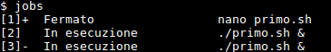 A questo punto posso digitare altri comandi mentre l'esecuzione del programma primo.sh continua sullo sfondo.