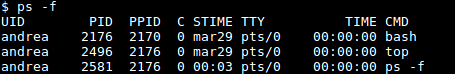 In questo caso, il comando mostra soltanto i processi in esecuzione relativi all'utente indicato.