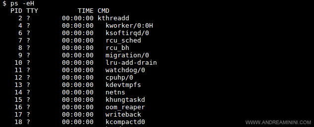 Per vedere la lista dei processi ordinata secondo un albero logico si aggiunge l'opzione H.