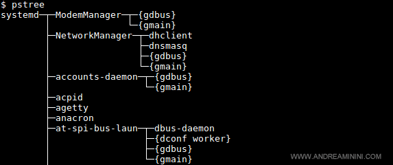 Questo comando mostra i processi in esecuzione con una rappresentazione ad albero logico ( tree ).