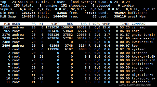Nota. In alcune distribuzioni si utilizza anche il comando htop. Tuttavia, è meno diffuso rispetto ai precedenti.
