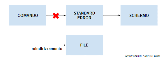 Per modificare la direzione dei messaggi di errore posso indicare la nuova destinazione dopo il simbolo 2>