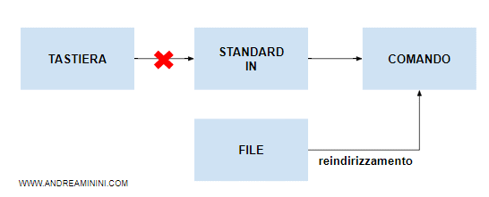 Per reindirizzare l'input si utilizza il simbolo minore ( < ).