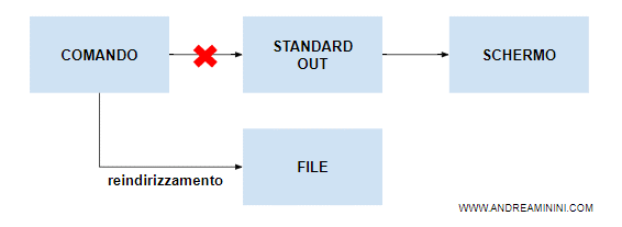 Nota. Il simbolo > equivale alla forma estesa 1>. Nella forma estesa l'operatore di redirezione indica esplicitamente il numero del descrittore di file da usare ( 1=standard output ).