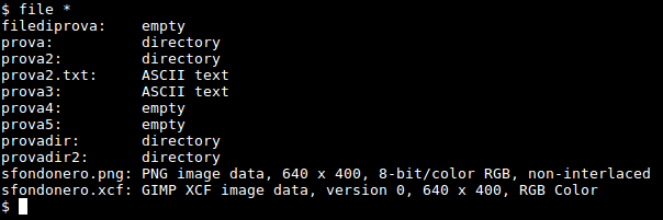 Il comando file consente di analizzare più files contemporaneamente. Basta digitare il comando seguito dal simbolo jolly * ( asterisco ).