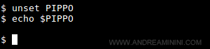 Per cancellare la variabile d'ambiente locale PIPPO scrivo