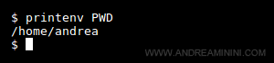 Per vedere il contenuto della variabile PWD apro il terminale e digito