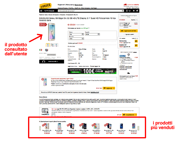 Un'altra tecnica molto utilizzata per ridurre l'incertezza si basa sul social proof. Questa tecnica consiste nel mostrare all'utente i prodotti simili più venduti.