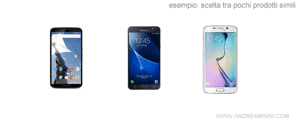 Se un sito e-commerce offre all'utente una lunga lista di prodotti tra cui scegliere, molto simili tra loro, il processo decisionale si blocca.