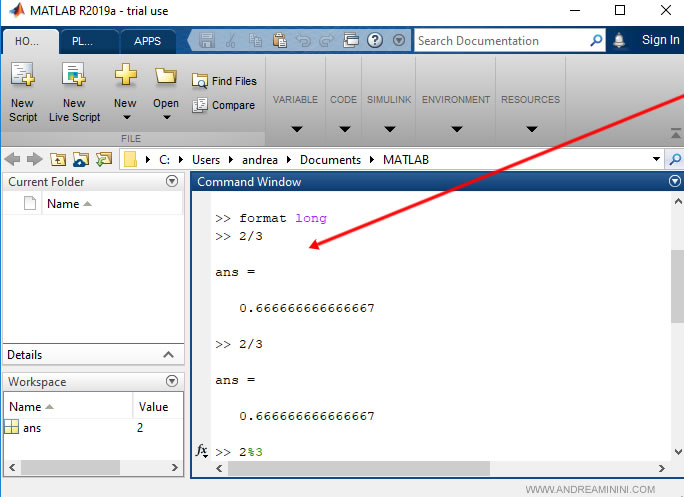 Digito i comandi sulla riga comando, do invio e Matlab lo esegue in tempo reale>>