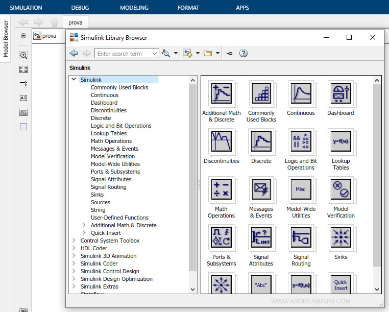 Clicco sulla voce Simulation in alto e seleziono Library Browser.